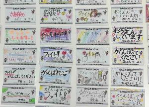 市内三校の中・高学年の児童・生徒に作成いただきました。国民スポーツ大会多久市競技会に来会される、選手・監督へ配布します。