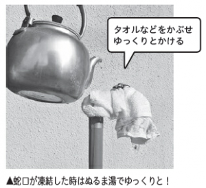 ※ 熱湯をかけると水道管や蛇口が破裂することがあります。